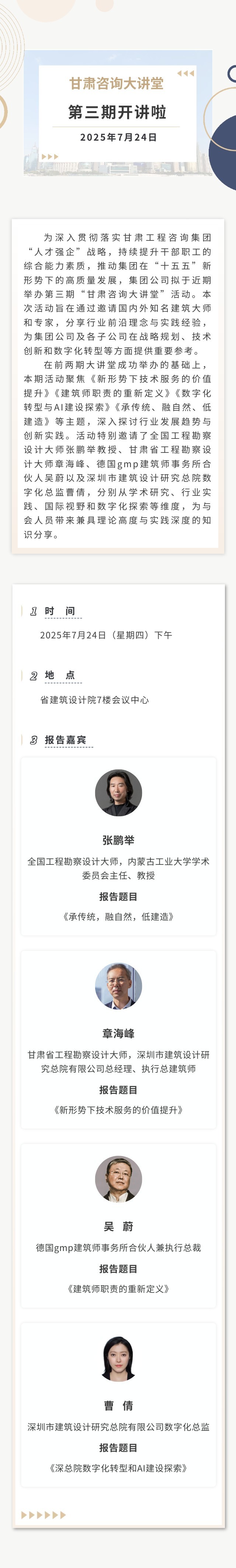 為深入貫徹落實(shí)集團(tuán)公司第二次黨代會(huì)精神,高質(zhì)量推進(jìn)“十五五”發(fā)展規(guī)劃編制工作,7月18日,甘肅工程咨詢集團(tuán)舉辦“甘肅咨詢大講堂”第二期專題講座,聚焦“十五五”發(fā)展形勢(shì)分析與戰(zhàn)略規(guī)劃開展深度輔導(dǎo)。集團(tuán)公司黨委書記、董事長張佩峰,總經(jīng)理、董事陳一夫,在家領(lǐng)導(dǎo)班子成員及高管出席,黨委委員、副總經(jīng)理孟康榮主持。此次講座緊扣工程咨詢行業(yè)發(fā)展主題,特邀科思頓企業(yè)咨詢管理(上海)有限公司高級(jí)合伙人、工程建設(shè)領(lǐng)域資深管理咨詢專家郭剛授課。...