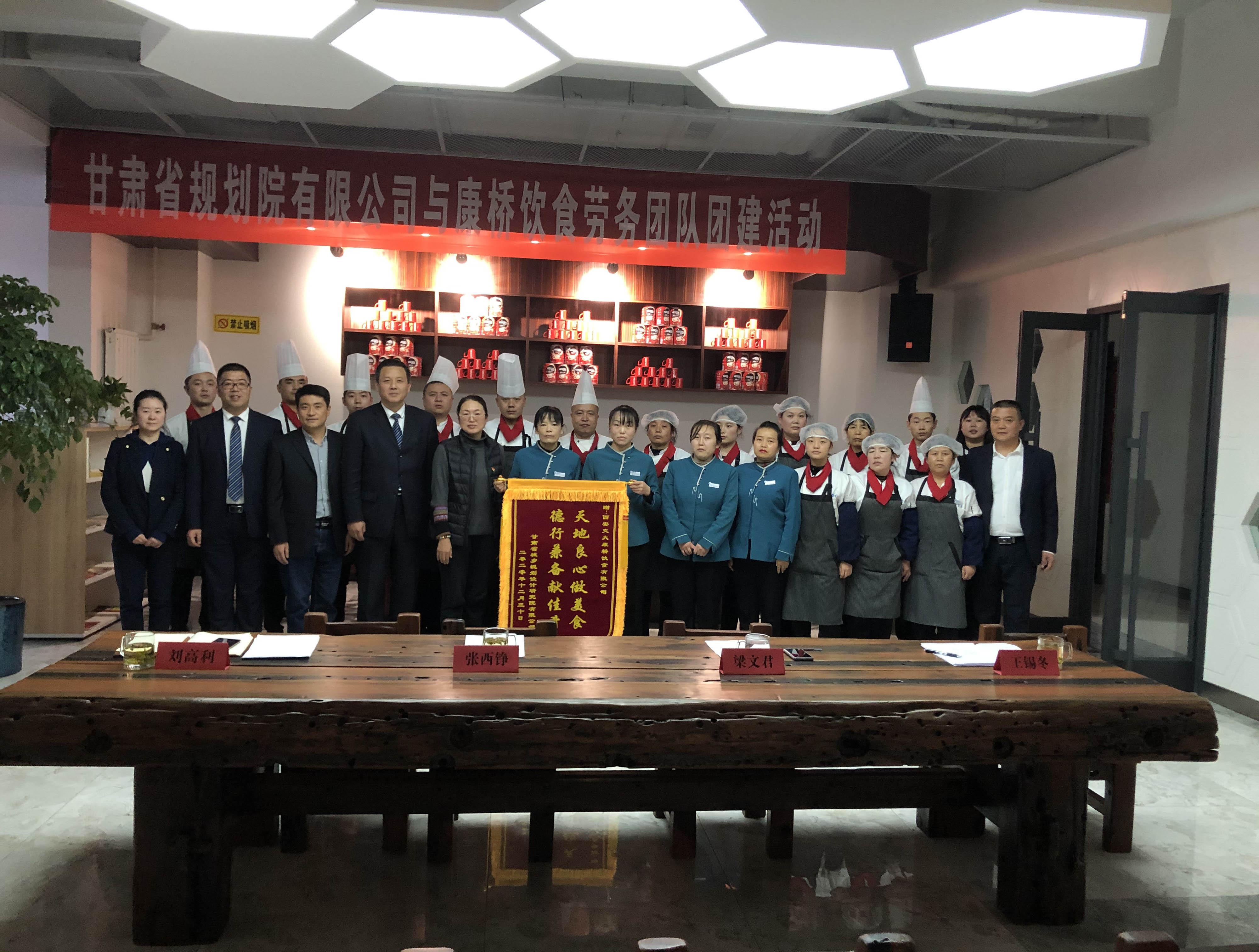 在團建活動上,公司紀委書記、工會主席梁文君代表公司向康橋飲食贈送錦旗,并對食堂全體工作人員的辛苦付出表示了肯定和感謝,希望康橋飲食公司通過加強管理,交流學習,進一步提升服務質量,做到精心、走心、細心、暖心的精細化管理,打造具有特色的職工食堂。康橋飲食有限公司總經(jīng)理助理劉高利代表康橋飲食有限公司總經(jīng)理景立杰先生感謝我公司各級領導對康橋飲食的支持與肯定。