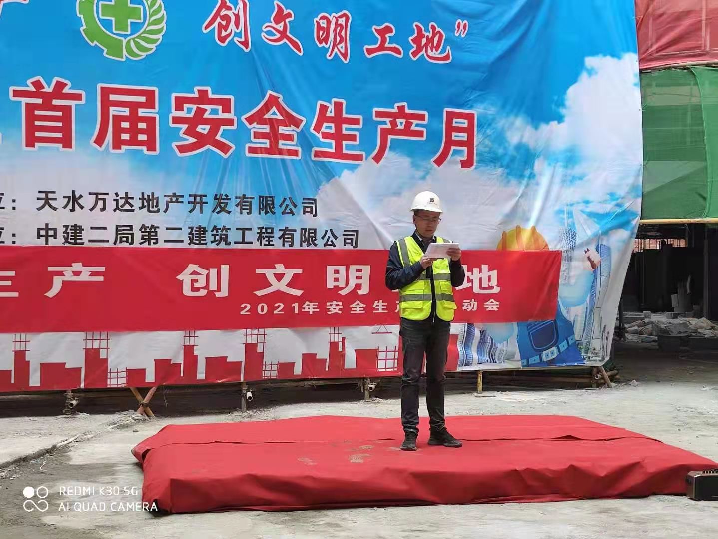 天水萬達廣場項目為我公司監(jiān)理二分院2019年8月1日中標項目,總建筑面積約32.9萬平方米。自承接該項目以來,監(jiān)理二分院始終將項目安全放在首位,守正篤實、持之以恒,不斷筑牢項目安全生產(chǎn)防線。節(jié)后恢復施工是項目生產(chǎn)的重要時期,也是安全事故的高發(fā)期。為杜絕節(jié)后大量施工人員進入施工現(xiàn)場帶來的安全隱患問題,天水萬達廣場項目部在做好疫情防控的前提下,組織開展了“安全生產(chǎn)月”活動。