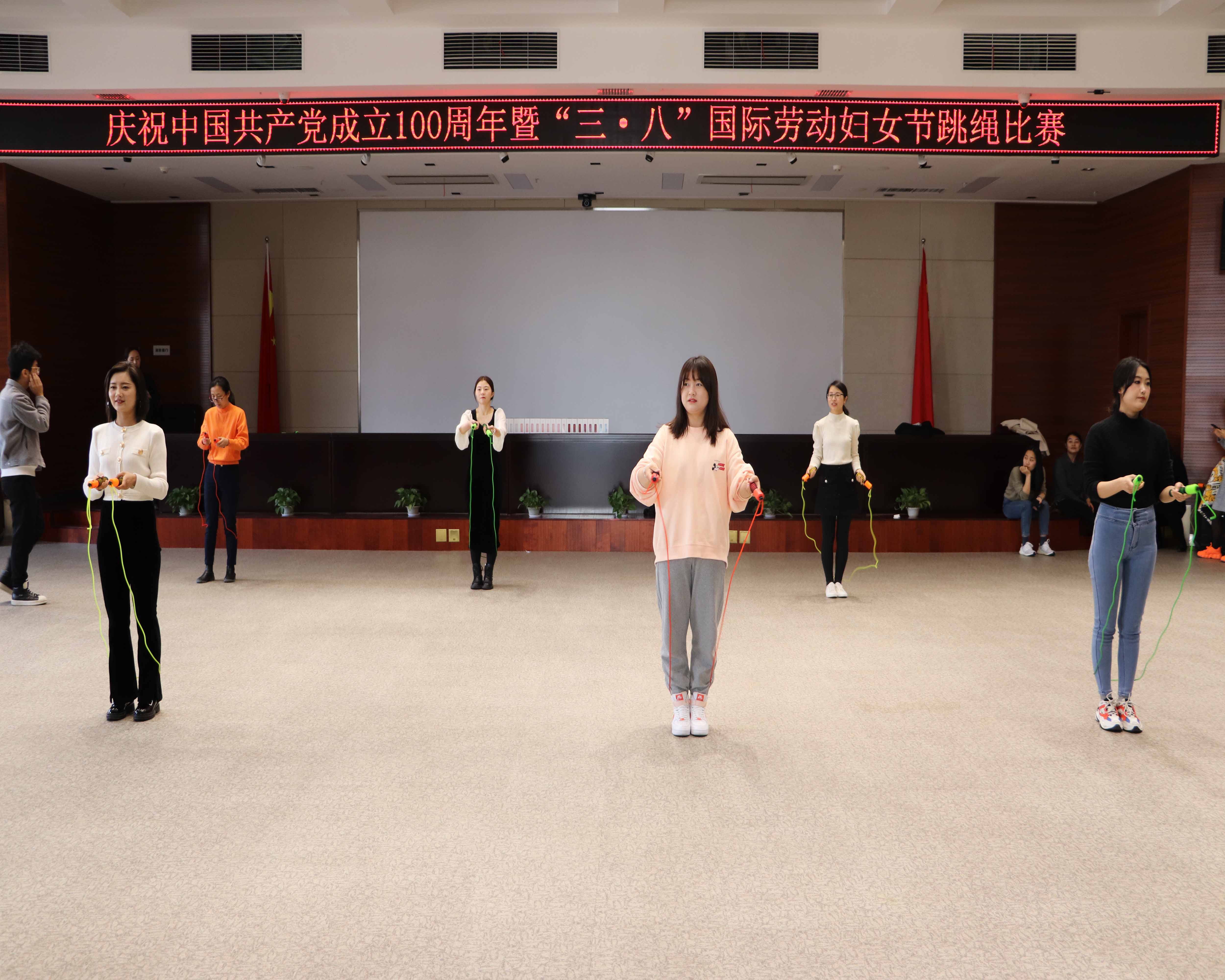 為慶祝中共共產(chǎn)黨建黨100周年,活躍公司廣大女職工業(yè)余生活,增強(qiáng)公司女職工的凝聚力和向心力,使公司女職工度過(guò)一個(gè)幸福、祥和、充實(shí)、快樂(lè)的節(jié)日,公司工會(huì)于3月8日上午在公司五樓大會(huì)議室開(kāi)展了慶祝中國(guó)共產(chǎn)黨成立100周年暨“三•八”國(guó)際勞動(dòng)?jì)D女節(jié)跳繩比賽。