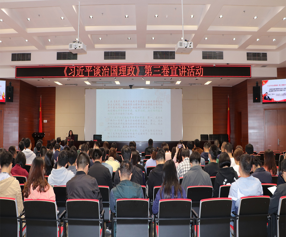 李冰心教授強(qiáng)調(diào),習(xí)近平新時(shí)代中國(guó)特色社會(huì)主義思想是新時(shí)代中國(guó)共產(chǎn)黨的思想旗幟,為實(shí)現(xiàn)中華民族偉大復(fù)興提供了行動(dòng)指南。《習(xí)近平談治國(guó)理政》第三卷生動(dòng)記錄了以習(xí)近平同志為核心的黨中央著眼“兩個(gè)大局”、統(tǒng)攬“四個(gè)偉大”,團(tuán)結(jié)帶領(lǐng)全黨和全國(guó)人民推動(dòng)黨和國(guó)家事業(yè)取得新的重大進(jìn)展的偉大實(shí)踐,集中展示了馬克思主義中國(guó)化的最新成果,是全面系統(tǒng)反映習(xí)近平新時(shí)代中國(guó)特色社會(huì)主義思想的權(quán)威著作。《習(xí)近平談治國(guó)理政》第三卷的出版發(fā)行,對(duì)于推動(dòng)廣大黨員干部學(xué)懂、弄通、做實(shí)習(xí)近平新時(shí)代中國(guó)特色社會(huì)主義思想,增強(qiáng)“四個(gè)意識(shí)”、堅(jiān)定“四個(gè)自信”、做到“兩個(gè)維護(hù)”具有十分重大的意義。宣講報(bào)告重點(diǎn)圍繞《習(xí)近平談治國(guó)理政》第三卷第三個(gè)專題《完善和發(fā)展我國(guó)國(guó)家制度和治理體系》,深度分析了制度建設(shè)的重要性、中國(guó)特色社會(huì)主義的制度圖譜、我國(guó)國(guó)家制度和治理的基本邏輯和特質(zhì)優(yōu)勢(shì),進(jìn)一步推動(dòng)了黨的創(chuàng)新理論深入人心,教育公司廣大黨員干部始終堅(jiān)持用習(xí)近平新時(shí)代中國(guó)特色社會(huì)主義思想武裝頭腦,毫不放松、落到實(shí)處。