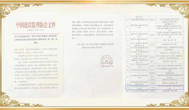 項(xiàng)目榮獲中國(guó)建設(shè)工程魯班獎(jiǎng),項(xiàng)目總監(jiān)理工程師榮獲“先進(jìn)個(gè)人”榮譽(yù)稱(chēng)號(hào)